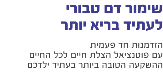 חלון הזהב של שימור דם טבורי הינו דקות בודדות מיד בתום הלידה. השירות ניתן בכל בתי החולים בישראל.